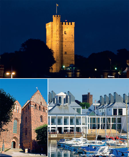 | Kärnan Kärnan har vaktat Helsingborg i snart 700 år. Den har blivit en symbol för staden. En spiraltrappa leder upp till toppen och härifrån får du en magnifik utsikt över staden och Danmark. Kärnan är 34 meter hög och murarna är 4,5 meter tjocka. Tornet är det enda som återstår av den gamla befästningsanläggningen som funnits här sedan medeltiden. Terrasstrapporna som förbinder Kärnan med Stortorget nedanför, invigdes 1903. Rådhuset Helsingborg har ett vackert och pampigt Rådhus från 1897. Det är inte bara den praktfulla exteriören som imponerar. Även trapphallen och de olika sessionssalarna är magnifika. Visning för grupper kan bokas genom Turistbyrån. ![]() Sancta Maria kyrka Den vackra kyrkan började byggas i början av 1300-talet och den stod färdig drygt hundra år senare. Se det utsökta altarskåpet från 1400-talet och minnestavlan över den berömda kompositören Dietrich Buxtehude som var organist här på 1600-talet. Helsingborg har många andra vackra kyrkor, t ex Gustav Adolfskyrkan på söder och Raus kyrka strax öster om Råå. Dunkers Kulturhus Välkommen till södra Sveriges största kulturhus som har väckt uppmärksamhet både nationellt och internationellt. Den vackra vita byggnaden, ritad av den danske arkitekten Kim Utzon, vänder sin skulpturala fasad mot Öresund och Danmark. Här visas temporära utställningar, stads- och kulturhistoria, musik och olika arrangemang av hög kvalitet. Vid ett besök ska man inte missa den fina museishoppen, bistron och restaurangen. Dunkers Kulturhus ligger i Norra Hamnen som har ett spännande läge med en exotisk känsla av sydliga breddgrader. |